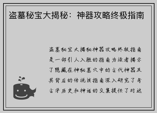 盗墓秘宝大揭秘:神器攻略终极指南