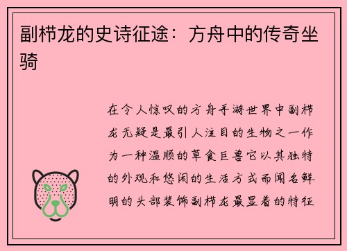 副栉龙的史诗征途:方舟中的传奇坐骑