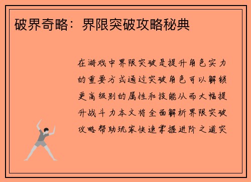 破界奇略:界限突破攻略秘典